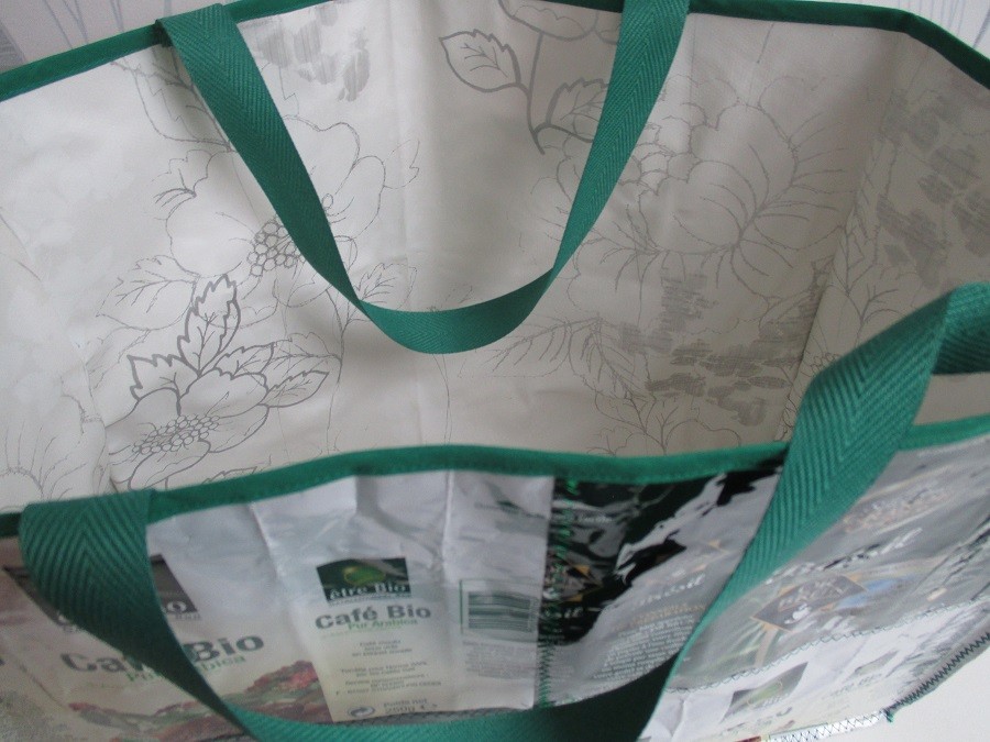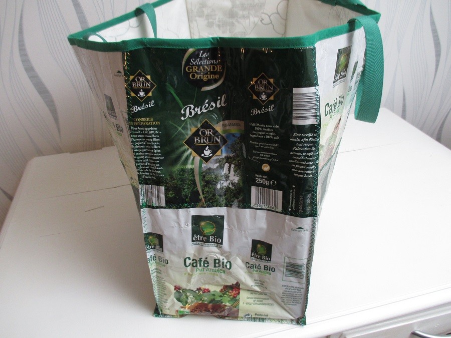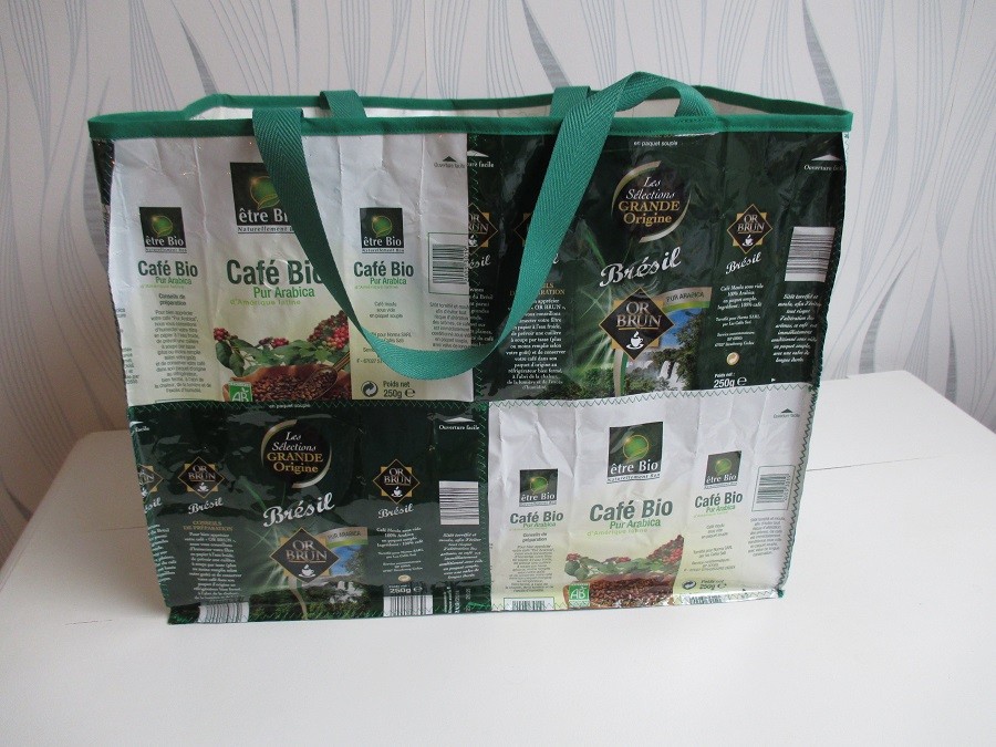 Ce sac est réalisé en assemblant des paquets de café