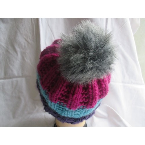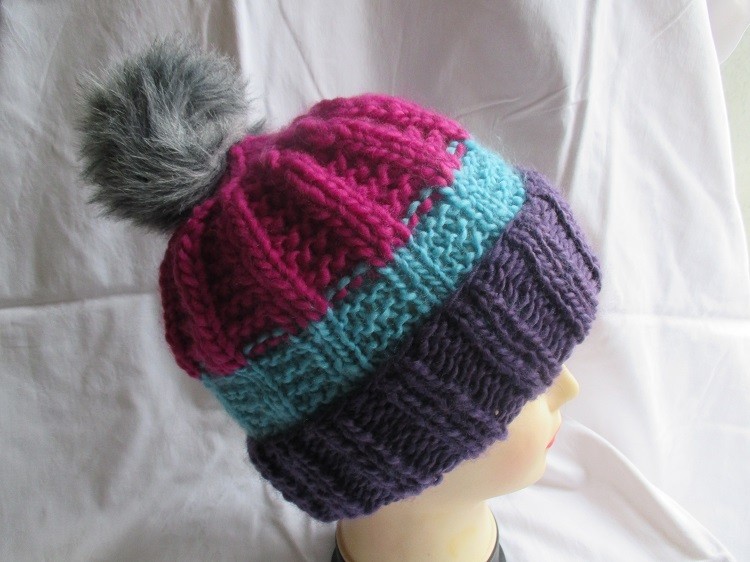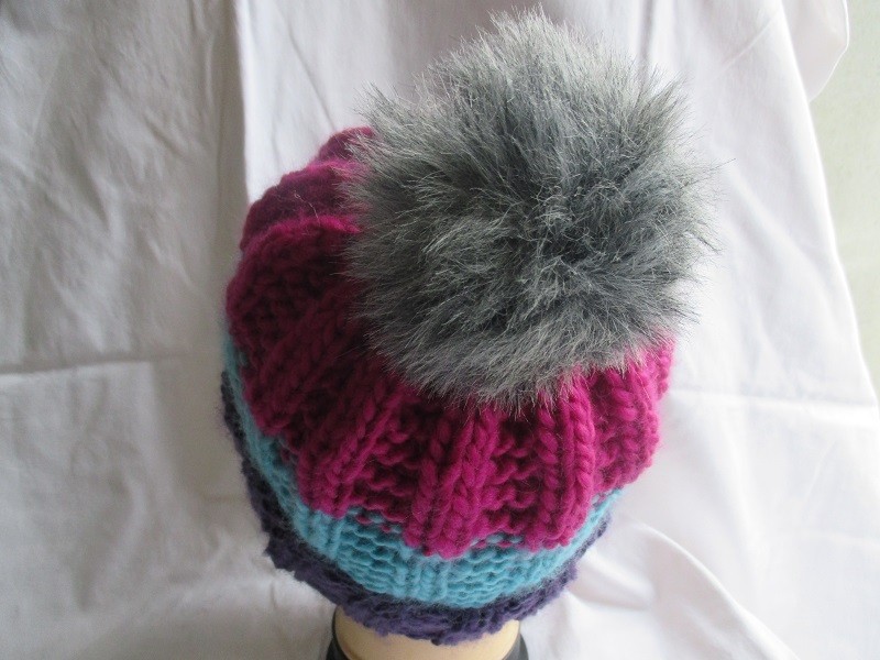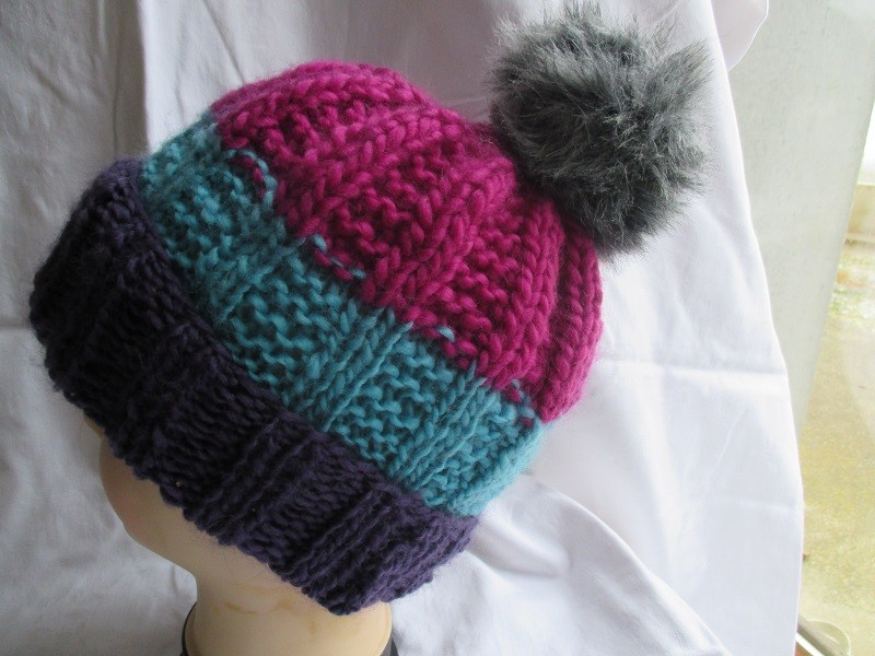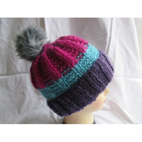 Joli bonnet avec revers et gros pompon.