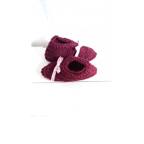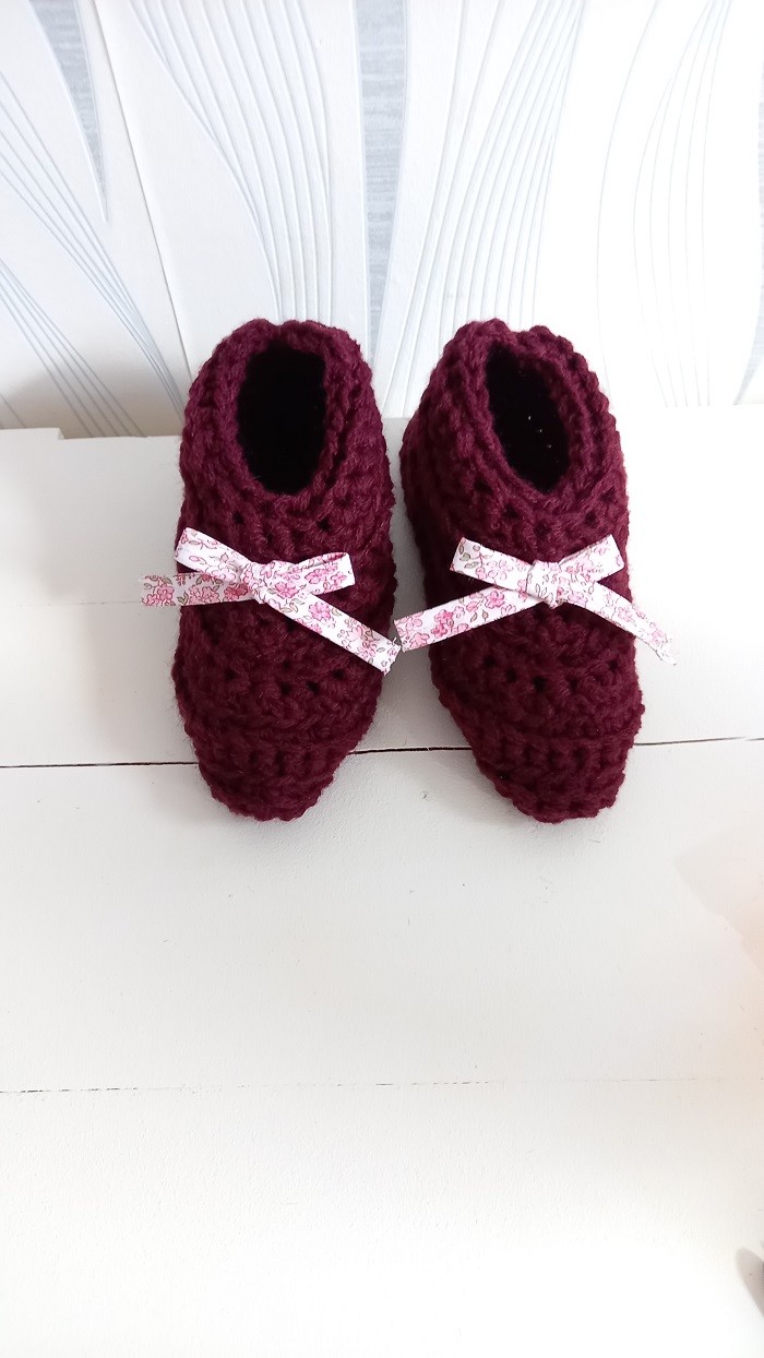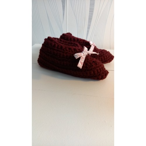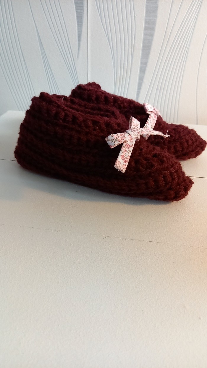 Un petit nœud à fleurs vient orner le chausson sur le devant, juste noué, vous pouvez facilement l'enlever si celui ci ne vous plait pas.