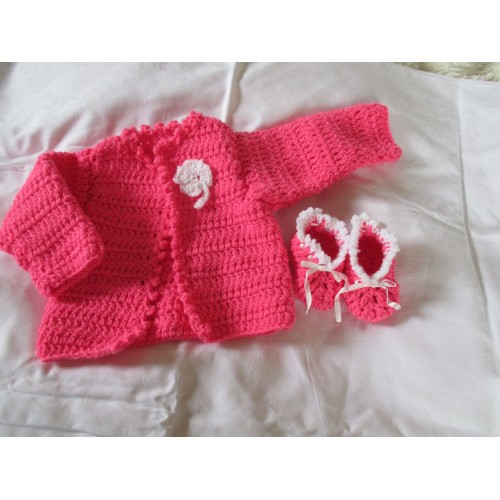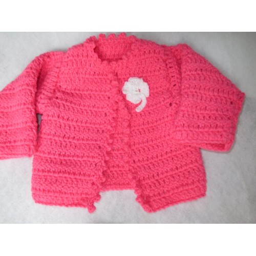 Crocheté à la main dans une laine rose bonbon avec sa petite fleur blanche.
