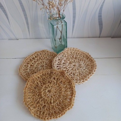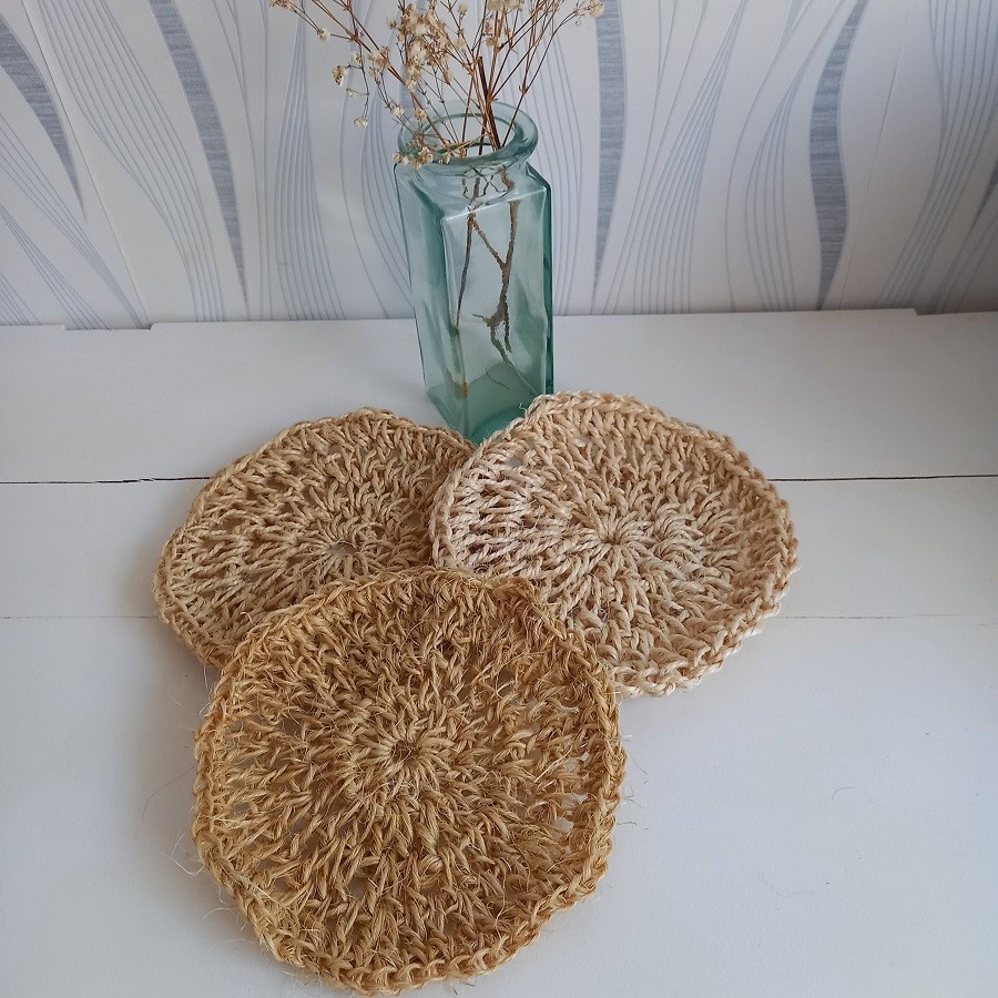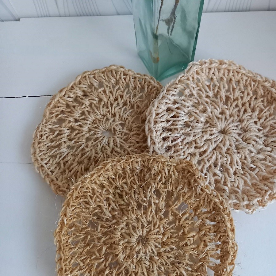 Original et indispensable, dessous de plat crocheté à la main en sisal, fibre naturelle écologique et végétale.