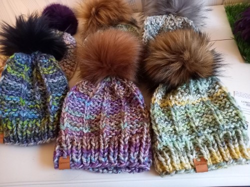 Le bonnet existe aussi dans d'autres couleurs avec des pompons différents
