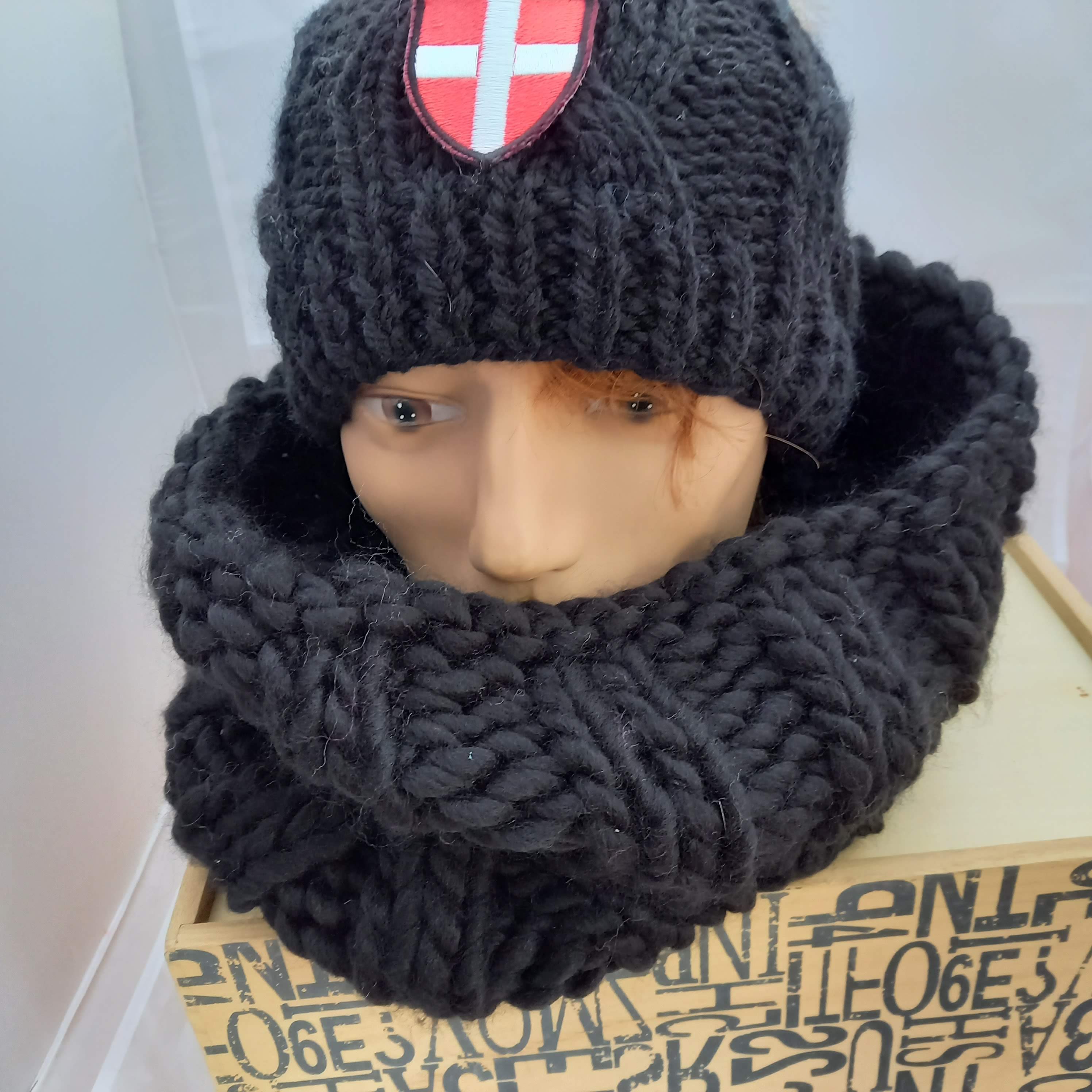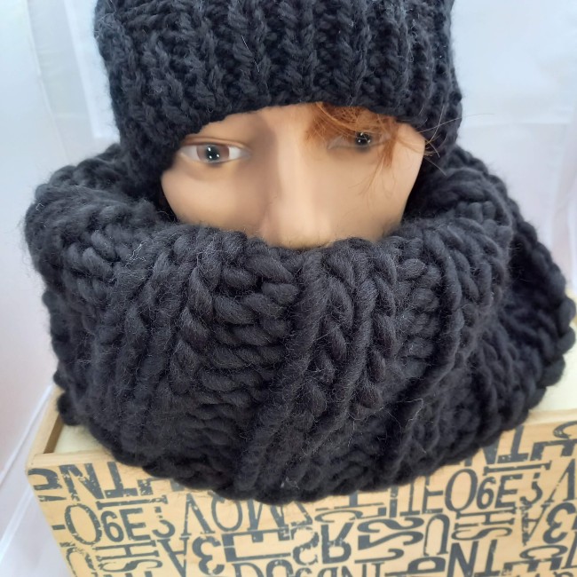 Gros tour de cou tricoté en laine couleur noire