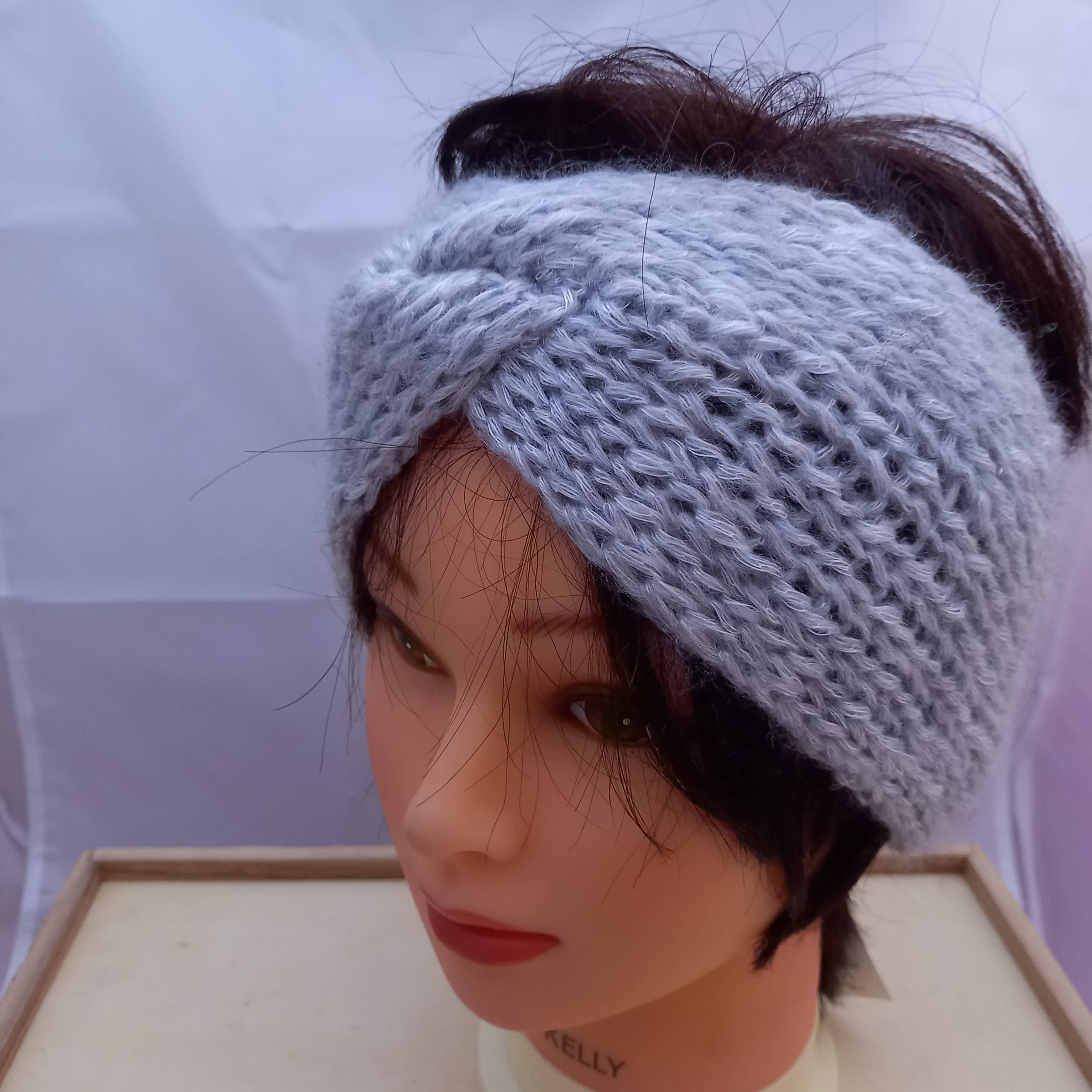 Bandeau cheveux réalisé au tricot dans une laine douce.