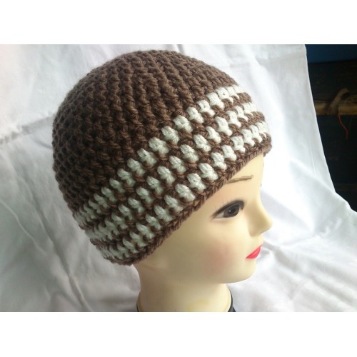 bonnet en laine marron, bonnet homme pour le ski au crochet couleur taupe bordure blanche