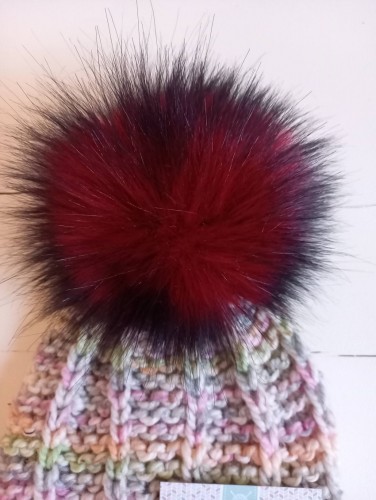 bonnet laine vert gris rose pour homme ou femme et pompon rouge bordeaux noir sur pression