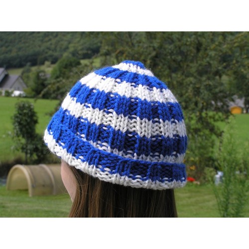 bonnet homme en laine style marin à rayures dans les tons de bleu et blanc
