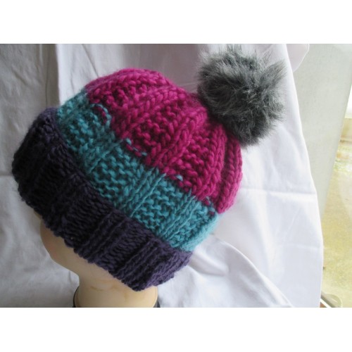 bonnet laine bleu, rose violet, bonnet ski pour homme, femme ou enfant en laine tricoté main