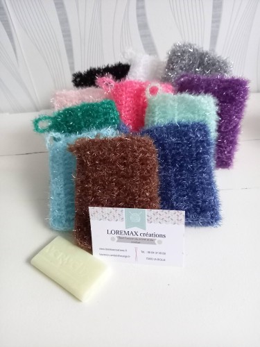pochette pour reste de savon en laine exfoliante, éco responsable zéro déchet pour vaisselle ou corps