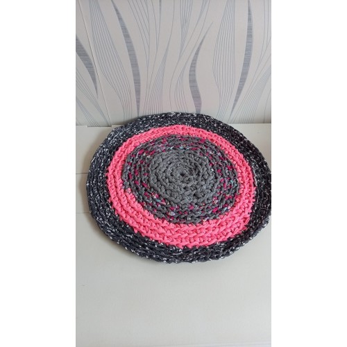 Tapis gris et rose au crochet en coton recyclé