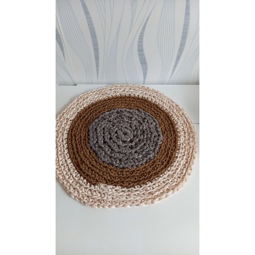 Tapis beige et marron au crochet en coton recyclé