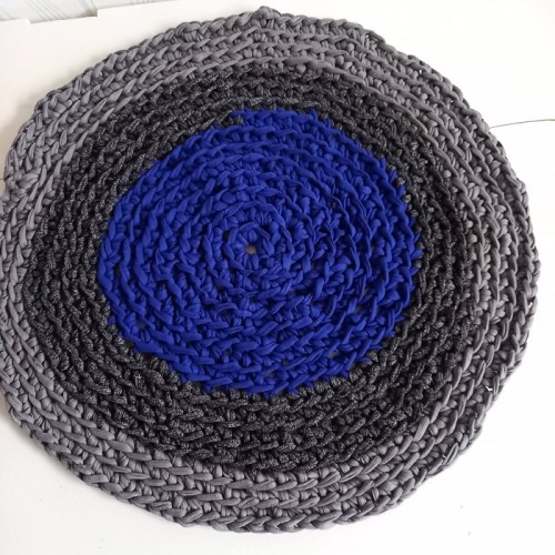Tapis bleu et gris au crochet en coton recyclé