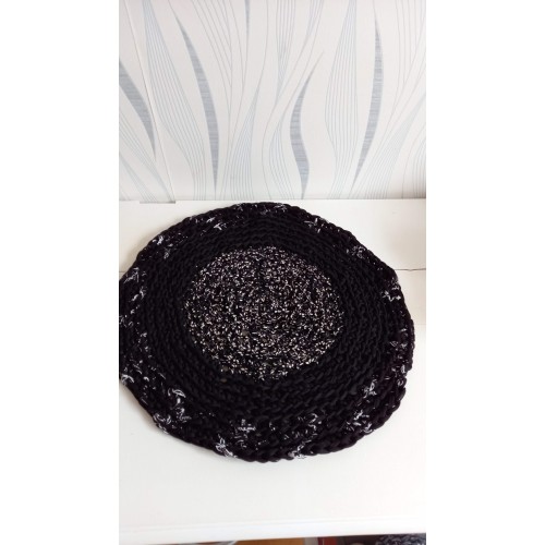Tapis noir et blanc au crochet en coton recyclé