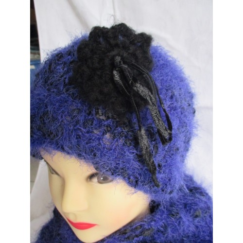 bonnet rétro tricoté en laine pour femme violet et noir